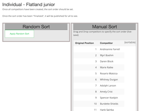 The Event Director can configure the order in which competitors are expected to compete